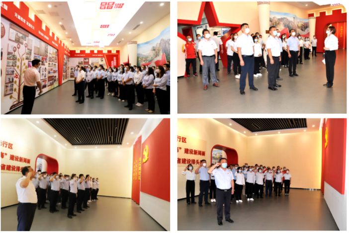 在学习参观中,全体党员干部在入党誓词墙前,庄严宣誓,在声声坚定的誓言中重温初心使命,坚定理想信念。
