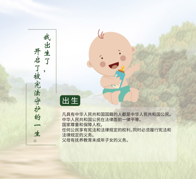 从我们一出生,宪法就和我们在一起,她呵护着我们健康成长,她规定了公民的基本权利和义务,她是国家的根本法,是治国安邦的总章程,她就是——《中华人民共和国宪法》。