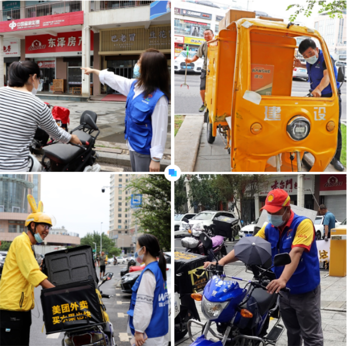 维持车辆停放秩序是志愿者的重点服务内容。韩乐坊社区是商户聚集地,正值威海旅游旺季,来往车辆和人员非常多,尤其是快递员和外卖员的摩托车多,存在路边随处停车的现象。志愿者们每看见欲在路边停车的人,就及时上前劝导,并帮助寻找停车位。