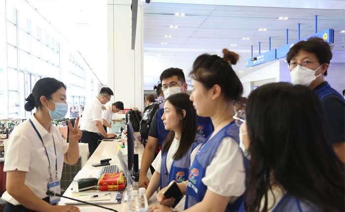 “等候网约车的旅客请到候车点。”“您好,请问您预约的网约车已经到了吗?““请您到这里排队上车。”地下车库人头攒动,志愿者赵静、梁月、张欣三名志愿者耐心细致地提醒着等车的旅客。这样的话语一遍遍重复下来,没多久,大家的嗓子都哑了,但她们仍然保持微笑服务,为旅客服务的热情丝毫未减少。