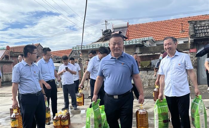 在党员和村民的见证下,集团党委委员、副总经理吕锋杰和村党支部书记丁雪枫为果园村老年活动室和暖心食堂揭牌,集团各党支部为暖心食堂送来了米面油等必备物资。