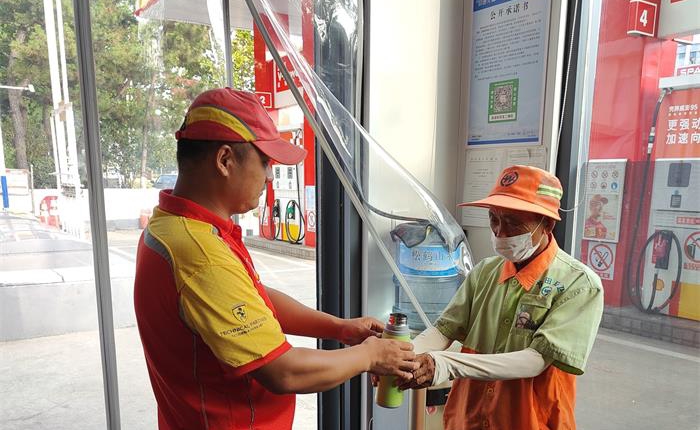 为扎实开展“我为群众办实事”活动,大威石油10座加油站变身成为“爱心驿站”,传递红色爱心,为环卫工人撑起“清凉伞”,让他们有个休息落脚的地方。走进红色爱心加油站,空调冷气扑面而来,在此歇息喝水的一位环卫工人表示,这次送清凉活动让他们觉得很贴心。“平时工作累了,只能站在马路边上歇一会儿,尤其现在夏天到了,经常热得汗流浃背。现在可以到这里喝点水避避暑,真是太好了!”